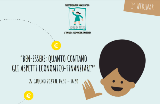 "Ben-essere: quanto contano gli aspetti economico-finanziari?" è il titolo di questo primo incontro, che tratterà i temi dell'educazione finanziaria e delle competenze finanziarie, del ben-essere psicologico, del rapporto tra ben-essere e benessere finanziario e dell'indipendenza finanziaria, conti correnti congiunti e separati, violenza economica.