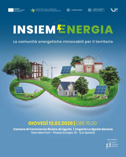 Fa tappa giovedì 12 febbraio in Liguria InsiemEnergia" la roadmap dedicata alla transizione energetica delle imprese, organizzata dal ministero dell’Ambiente e della sicurezza energetica con il Gestore dei servizi energetici (GSE) e Unioncamere. L’iniziativa, articolata in 21 appuntamenti, si inserisce nell’ambito della convenzione sottoscritta da Unioncamere con il MASE volta a sensibilizzare imprese, amministrazioni locali e cittadini sui benefici energetici, economici e sociali delle Comunità energetiche rinnovabili, fornendo informazioni pratiche sui contributi disponibili.